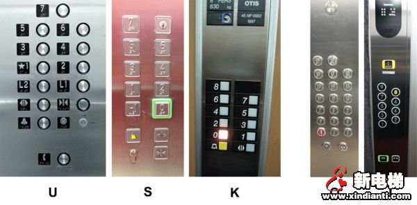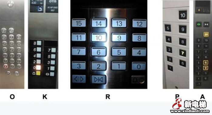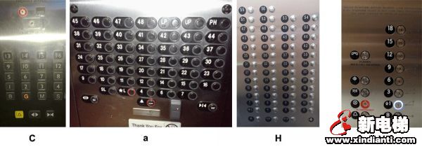 楼层按钮绝大部分都是规规矩矩的横纵对齐模式,在讲总体形态问题时已经讲过,这种排列方式应该是根据人们对现代建筑建立的心理模型而来,而在横纵对齐排布之下,有且仅有横向与纵向排布两种模式。