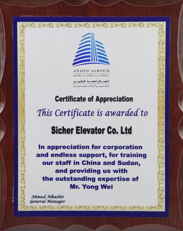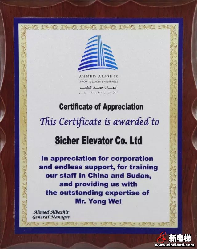 近日,森赫电梯收到来自苏丹客户的感谢证书,赞赏了森赫工程服务团队在新春佳节期间,不辞辛劳远赴万里——苏丹,为项目工程施工提供服务和技术支持。
