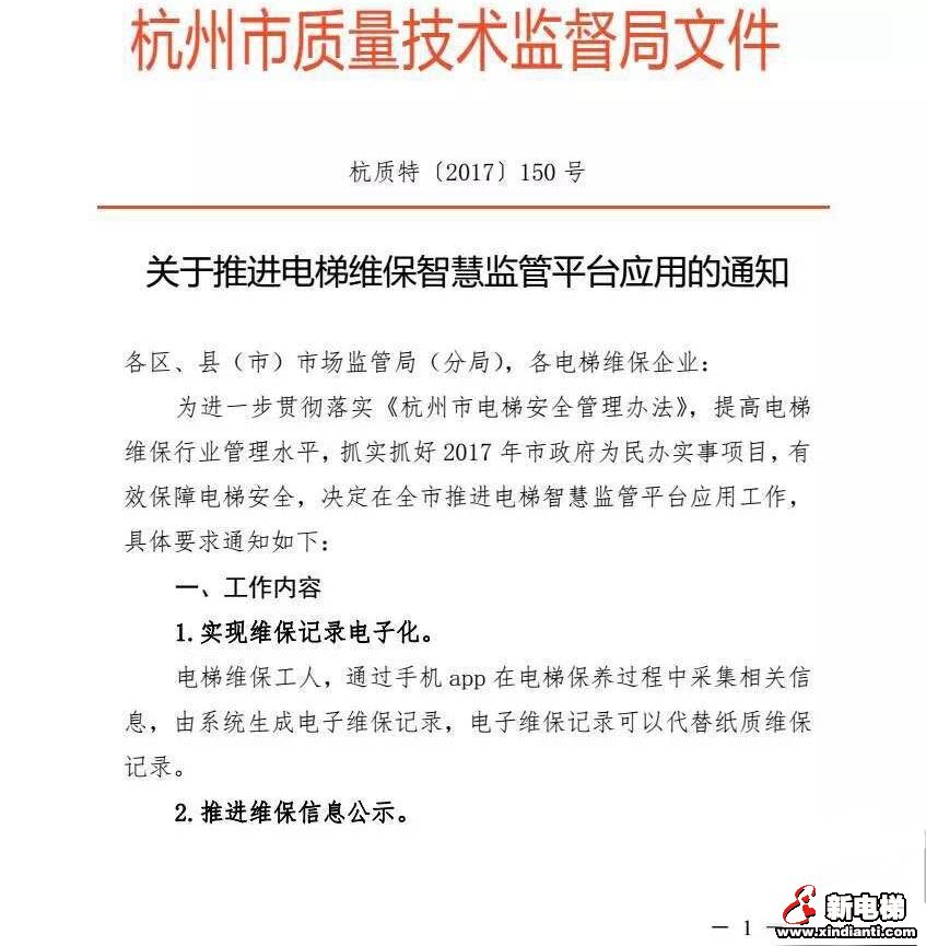 杭州市质量技术监督局日前发文支持电梯维保物联网建设。