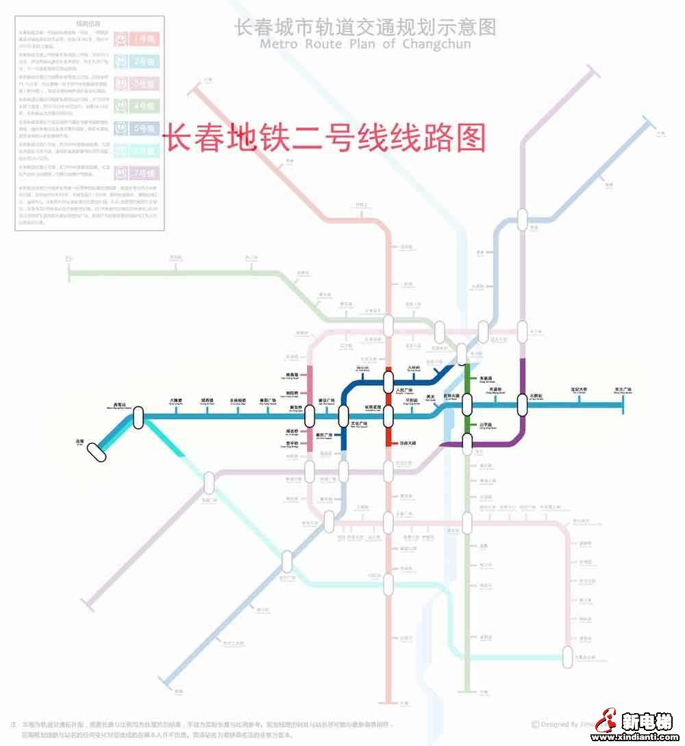 长春地铁2号线总线路长36.0公里,贯通城市东西方向,途径主要客流集散点,是线网中大运量级骨干线。其中一期工程20.5公里,共设车站19座,全部为地下站,现已全线开工建设,全线计划2018年6月30日正式通车试运营。