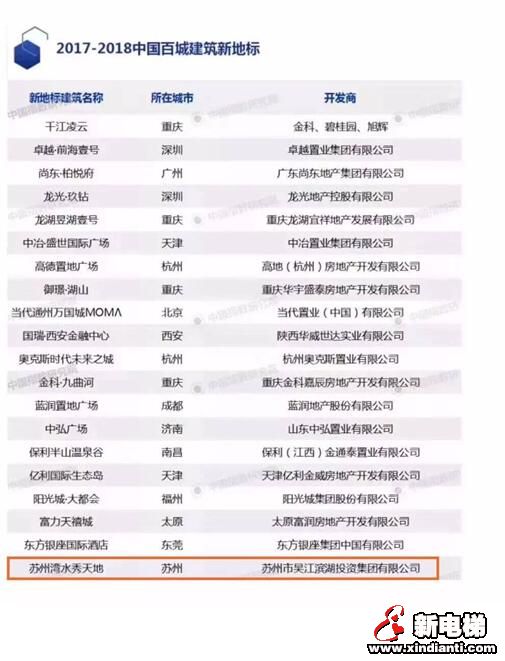 The 14th China Digital Real Estate conference and the 2nd Annual Ceremony of Big Data of China Real Estate Industry has been held by China Index Academy, and the Suzhou Bay Shuixiu World, equipped with 91sets of Canny-made elevators, has won the China Urban Landmark Buildings 2017-2018, thanks to its overall picture including unique design and novel style.
