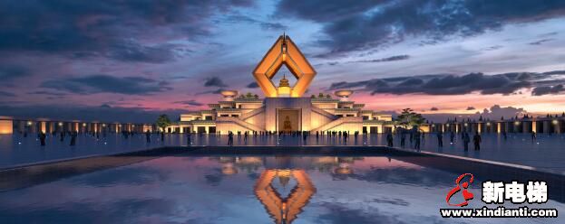 对一座50层楼高、供游客和佛教徒瞻仰的特型建筑来说,如何方便登塔,是李祖原先生必须面对的难题。在与苏州莱茵电梯股份有限公司接洽后,该公司为佛塔量身定制了四架倾斜54°、提升高度145米、载重1600Kg、运行速度达2.5米/s的斜行电梯。圆满解决这一难题。