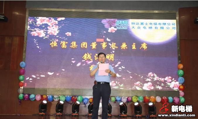恒富集团董事长钱江明在晚会开始前为在座的所有恒富家人送去了中秋最美好的祝福。董事长钱江明表示,恒富集团走过的光辉历程,离不开在座每一位员工及家人的辛勤付出和无私奉献,正是有了你们,恒富集团才能够在国内电梯行业成为广大用户满意的电梯品牌。恒富集团感恩于有这样的员工,节假日有可能为了一份合同为了工地上的电梯安装调试而放弃与家人团聚,我们都会铭记于心。恒富集团未来的发展是要朝着“让客户满意 让员工幸福”的伟大目标努力,我们相信在全体恒富家人的努力奋斗下,这一伟大目标终将会实现。最后,董事长钱江明祝愿所有恒富家人中秋佳节团圆美满、工作顺利、身体安康!