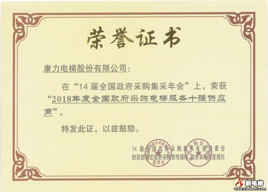 连续10年登榜!康力电梯再获2018年度全国政府采购大奖