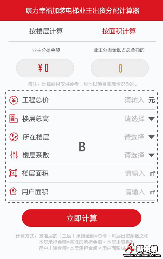 加装电梯业主出资分配计算器