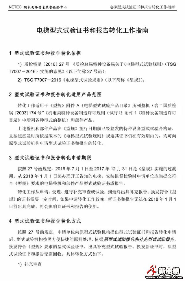 2018年1月1日须完成,电梯型式试验证书和报告转化工作指南